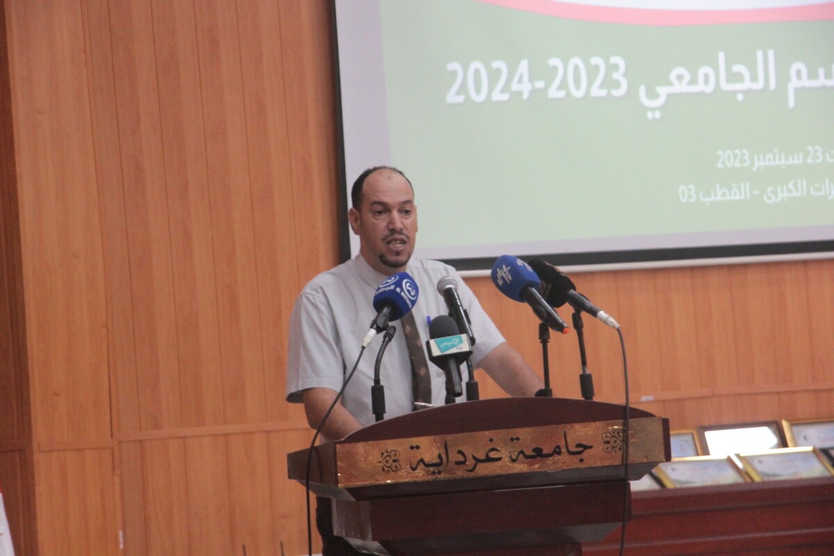 بإشراف السيد والي ولاية غرداية وممثلي السلطات المحلية، نظمت جامعة غرداية حفل الإفتتاح الرسمي للموسم الجامعي 2024/2023 وذلك يوم السبت 23 سبتمبر 2023 بقاعة المؤتمرات بالقطب الجامعي رقم 03. وقد حضر حفل الافتتاح ممثلي السلطات القضائية والمدنية والعسكرية وفواعل المجتمع وكذا الأسرة الجامعية ممثلة في مدير الجامعة ونوابه، الأمين العام للجامعة، عمداء الكليات ورؤساء الأقسام، مدير الخدمات الجامعية، مديري الإقامات الجامعية، مدير وحدة البحث في الطاقات المتجددة، ومدير مركز جامعة التكوين المتوصل وممثلي نقابات الأساتذة والموظفين والعمال والمنظمات والنوادي والطلبة، وعدد من الطلبة والأساتذة والموظفين والعمال.