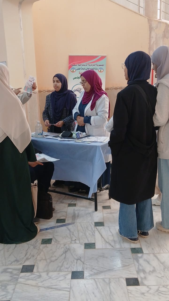 تنقلت وحدة الطب الوقائي الى كلية العلوم الاجتماعية والانسانية لغرض تحسيس وتوعية الطلبة والموظفين في الكلية و لقد لقي اقبال واستحسان الجميع .
