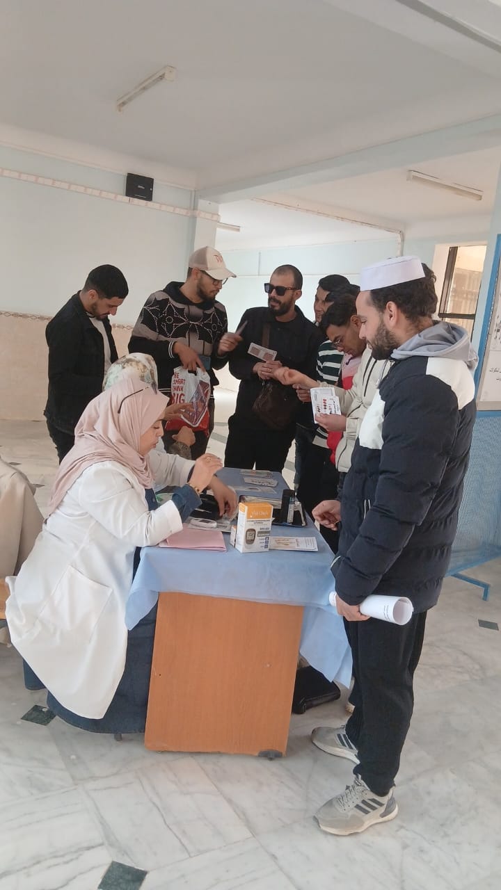 الثلاثاء 03 مارس 2026 (داء السكري ورمضان) تنقلت وحدة الطب الوقائي الى كلية الحقوق والعلوم السياسية لغرض تحسيس وتوعية الطلبة والموظفين في الكلية و لقد لقي اقبال واستحسان الجميع .
