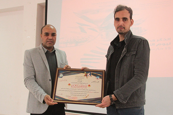 أحيت المديرية الفرعية للانشطة العلمية والثقافية والرياضية بجامعة غرداية يوم الثلاثاء 22 مارس 2022 بقاعة المدياتيك ندوة تاريخية بمناسبة الذكرى ال 60 لعيد النصر 19مارس. بحضور السيد مدير الجامعة الاستاذ الدكتور بن ساسي إلياس نائب المدير الطور الأول والثاني، عميد كلية العلوم الاقتصادية التجارية وعلوم التسيير، المدير الفرعي للانشطة العلمية والثقافية والرياضية، المجاهد دحمان رمضان، أساتذة وطلبة الحامعة. استهلت فعاليات هذه الندوة بالتلاوة العطرة من الذكر الحكيم والنشيد الوطني ليعتلي بعدها المدير الفرعي للانشطة العلمية والثقافية والرياضية المنصة لالقاء كلمة ترحيبية بالحضور، ليحيل الكلمة إلى السيد المدير لالقاء الكلمة بمناسبة عيد النصر وذكر فيها نضالات الشهداء ومجاهدين إبان الثورة الجزائرية. وكانت اول مداخلة للدكتور ملاخ عبد الجليل حول “احياء اليوم الوطني للنصر 19 مارس 1962 ” تحت شعار اصرار إنتصار . كما كانت هناك شهادات حية للثورة الجزائرية بصفة عامة وعن منطقة متليلي بصفة خاصة من طرف المجاهد دحمان رمضان. …. كما كان هناك عرض مسرحي يلخص التحاق الشباب الجزائريين للثورة الجزائرية من طرف جمعية الطفولة الثقافية لترقية ودعم المواهب.